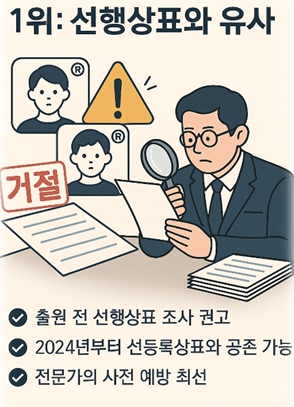 최근 동향 및 빈도: 선행 상표와의 유사성은 가장 빈번한 거절 이유 1위입니다.